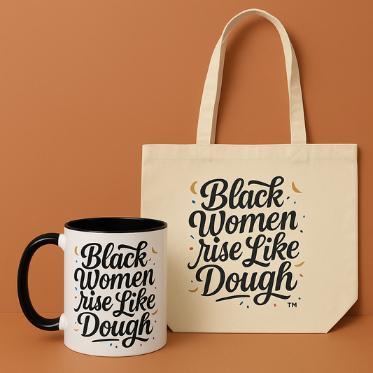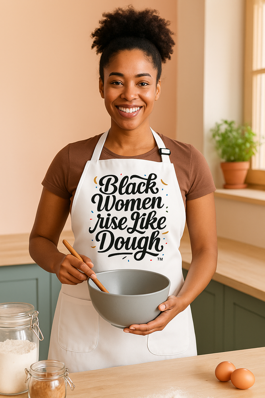 More than a product line—Black Women Rise Like Dough™ is a movement. Rooted in the warmth of the kitchen and the strength of our stories, this collection honors the spirit of Black womanhood through affirming lifestyle goods, kitchen decor, and wearable reminders of your power.